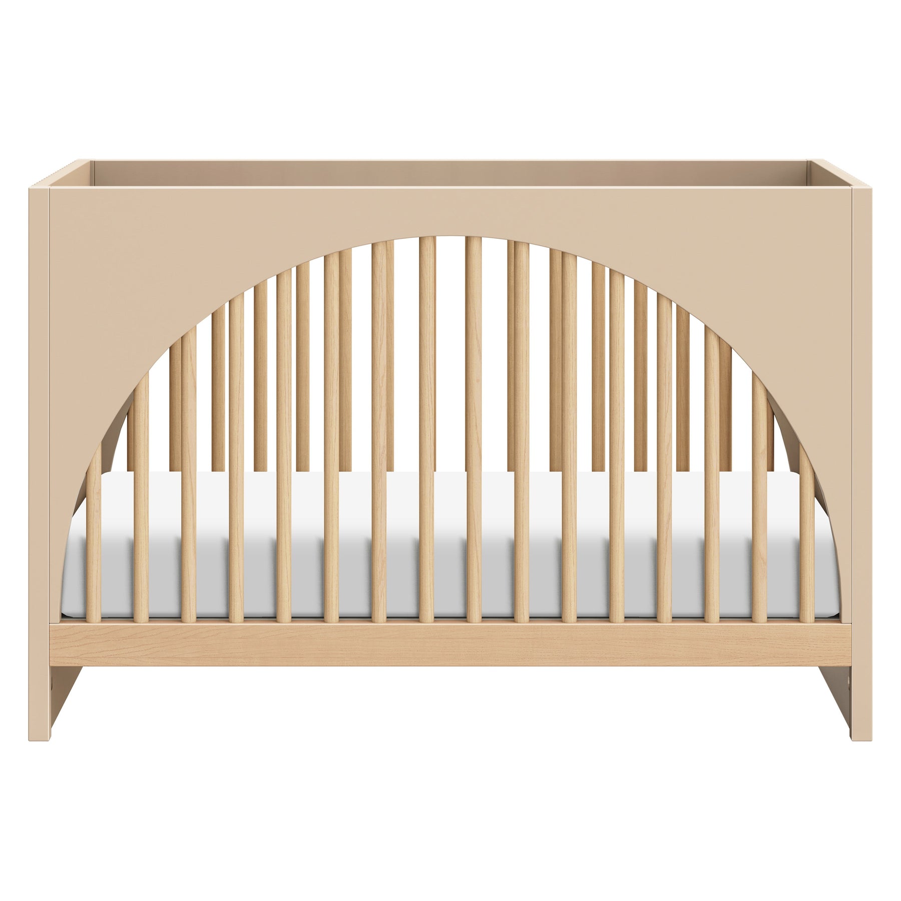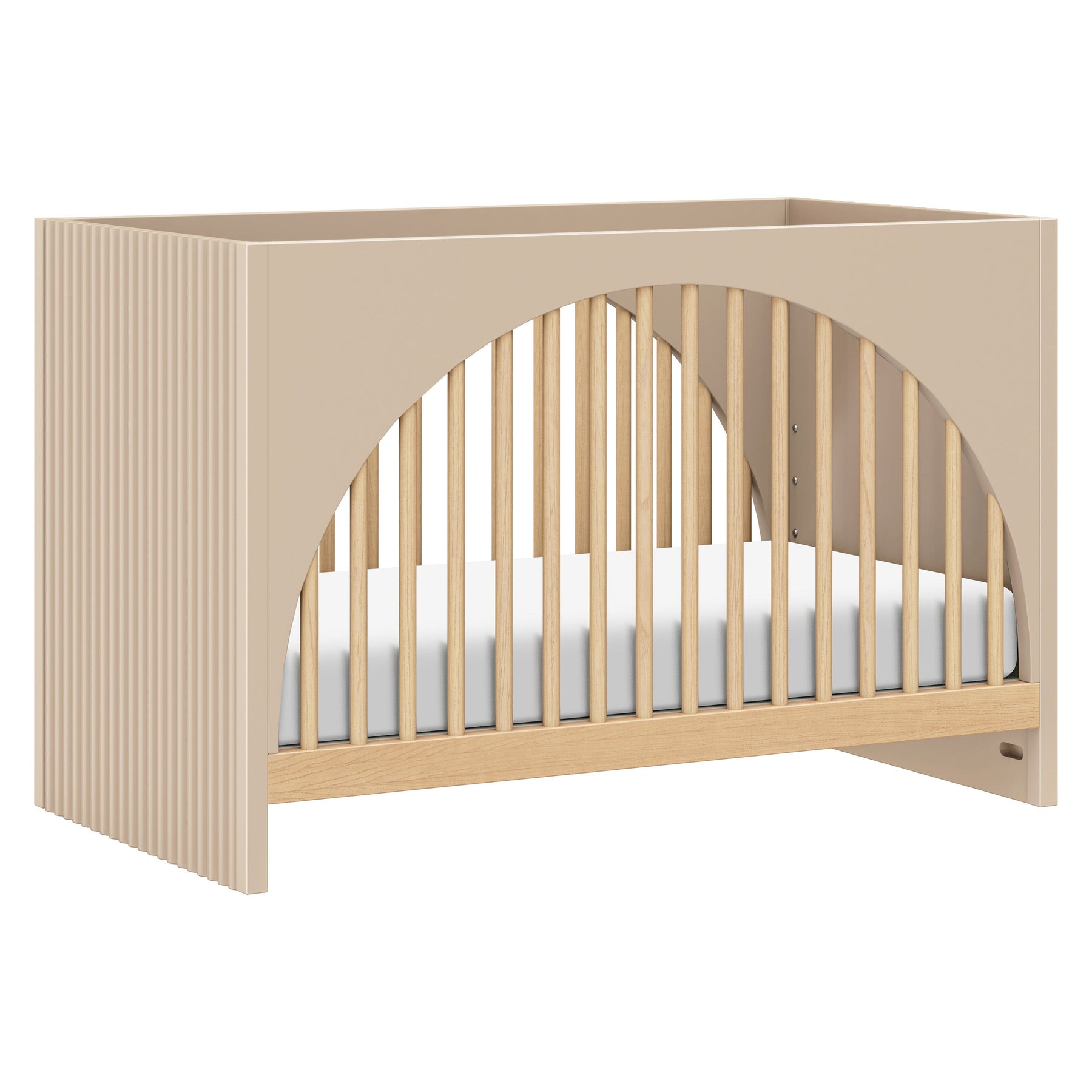 The Moab 3-in-1 Convertible Crib evokes nature-inspired design with its use of playfully arched front and back panels and modern tambour side paneling. The Moab was designed to grow with your babe, converting from standard crib to toddler bed to daybed. GREENGUARD Gold certified and finished with non-toxic paint and stain, the Moab is a safe and sustainable choice for any nursery.