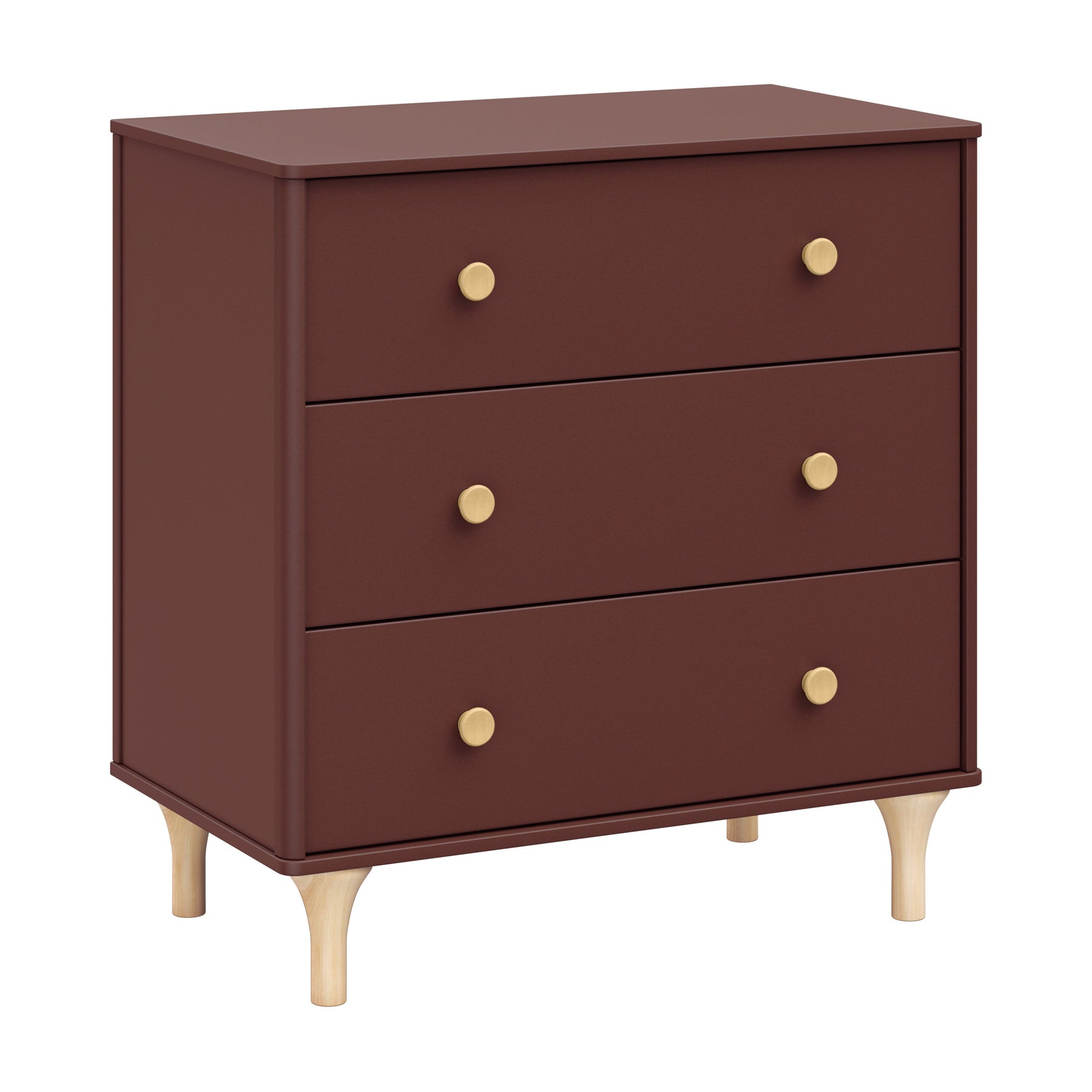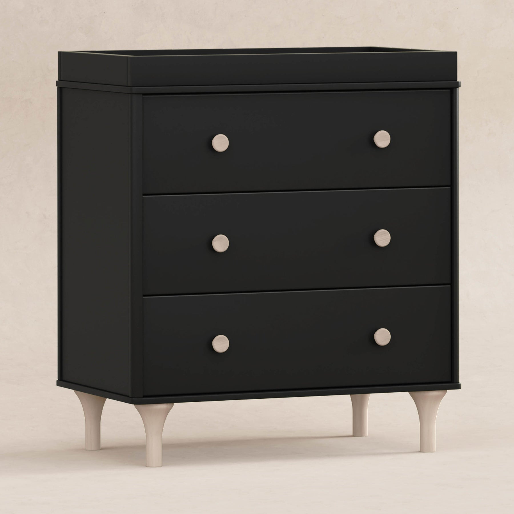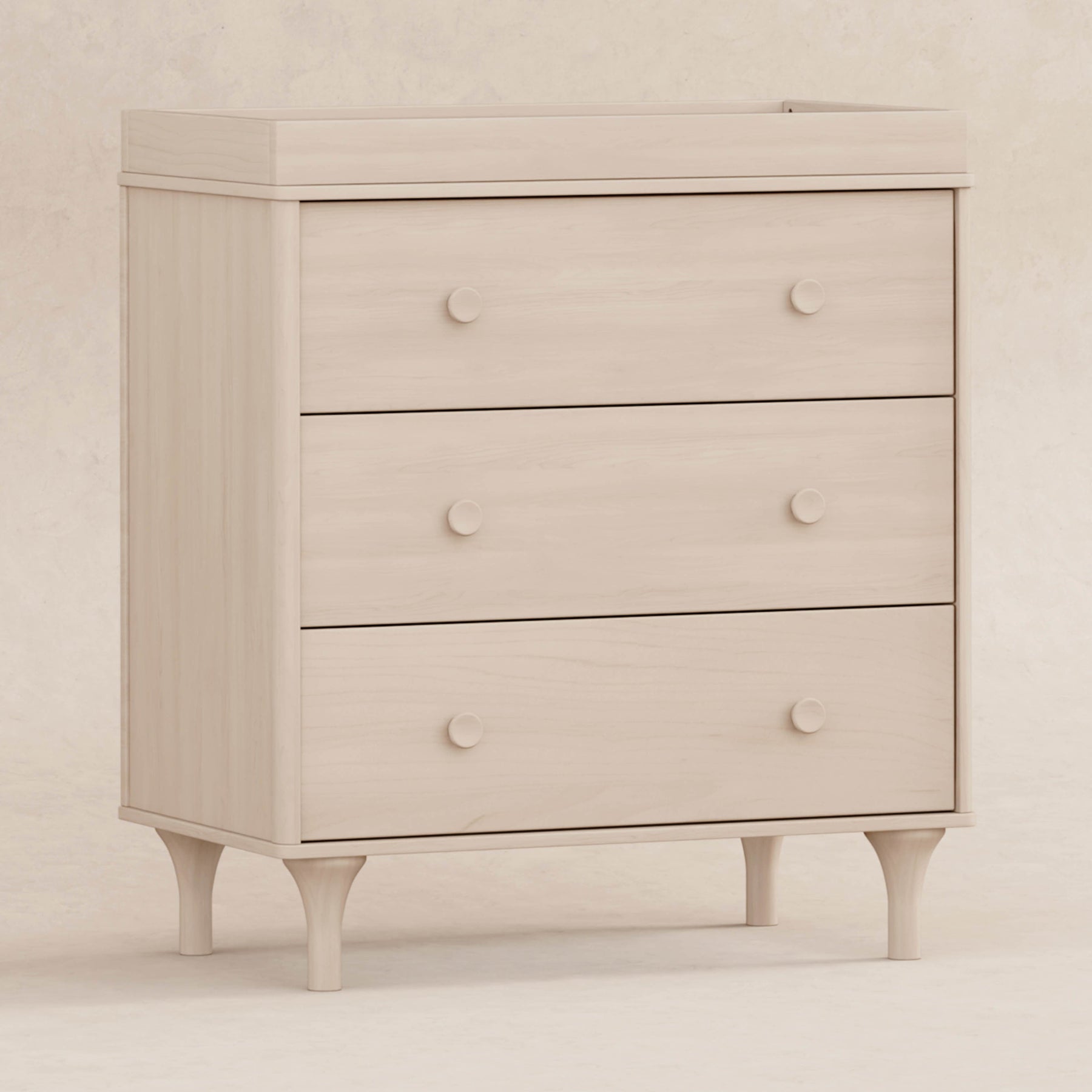 Enjoy the playful modern design of the Lolly 3-Drawer Changer Dresser! With natural curves and delicate natural feet that compliments the Lolly 3-in-1 Convertible Crib. Designed especially for the nursery with an included removable changing tray, smooth-glide drawers, hidden hardware, and included anti-tip kit.