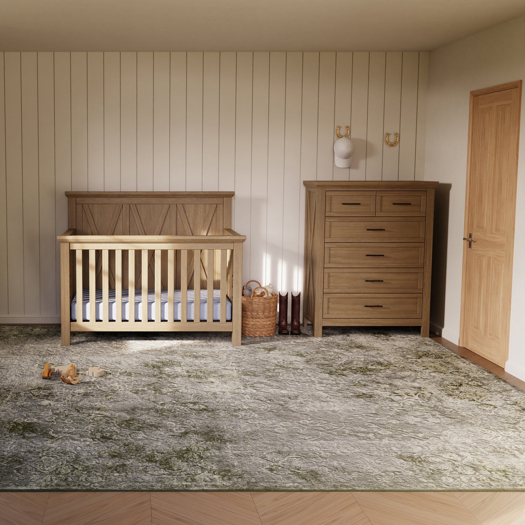The Emory Farmhouse 6-Drawer Chest combines rustic and modern designs to provide a beautiful and functional storage space for your nursery. A perfect addition to the Emory Farmhouse 4-in-1 Convertible Crib & Emory Farmhouse 6-Drawer Dresser, the Emory Farmhouse Chest features 6 deep drawers with self-closing, ball-bearing glides for ease of use.