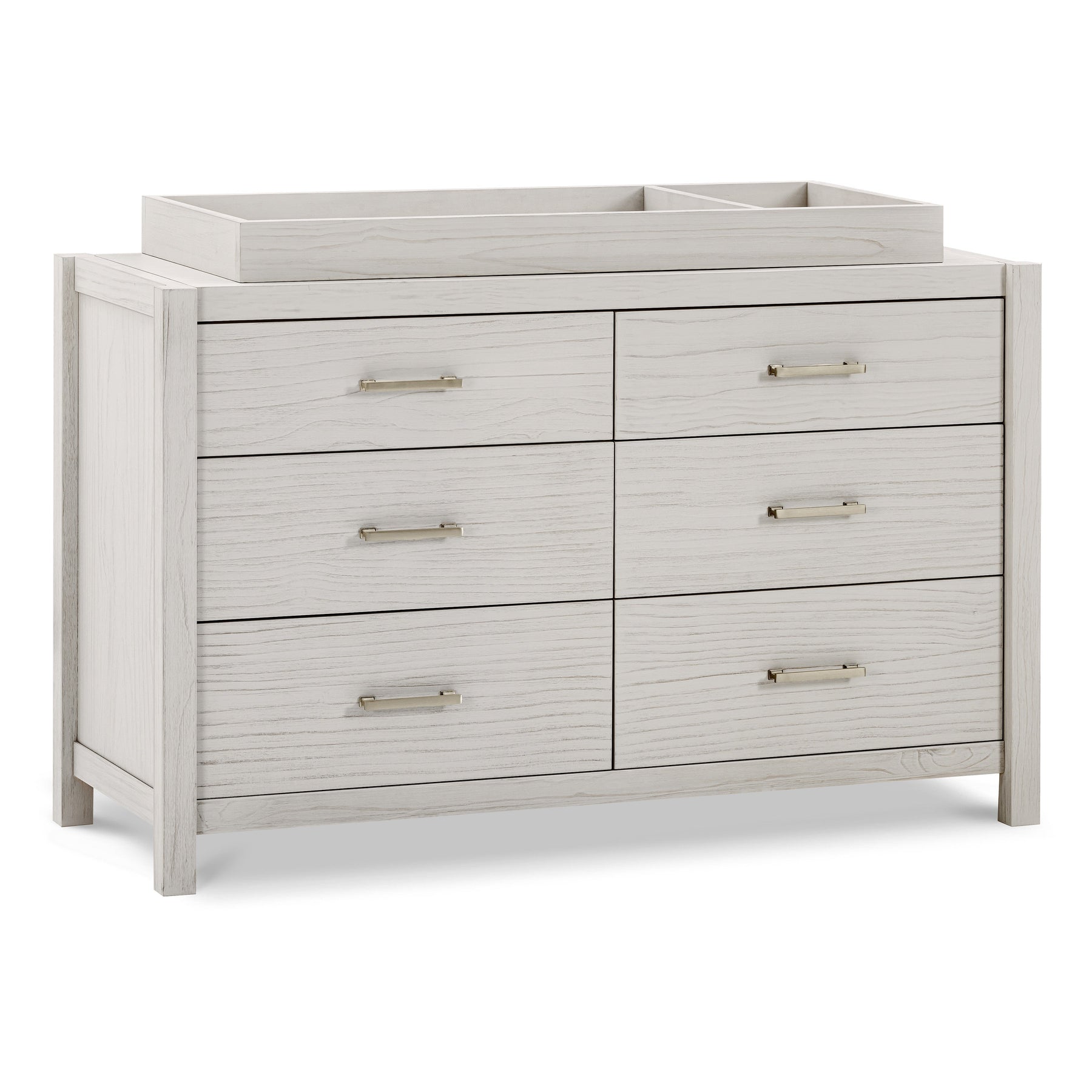 Complete your modern farmhouse nursery with the Hemsted 6-Drawer Dresser, featuring a premium texturized wood finish and elegant gold hardware that enhances the dresser's contemporary flair. Soft-closing, ball-bearing drawer glides make this dresser easy to use.
