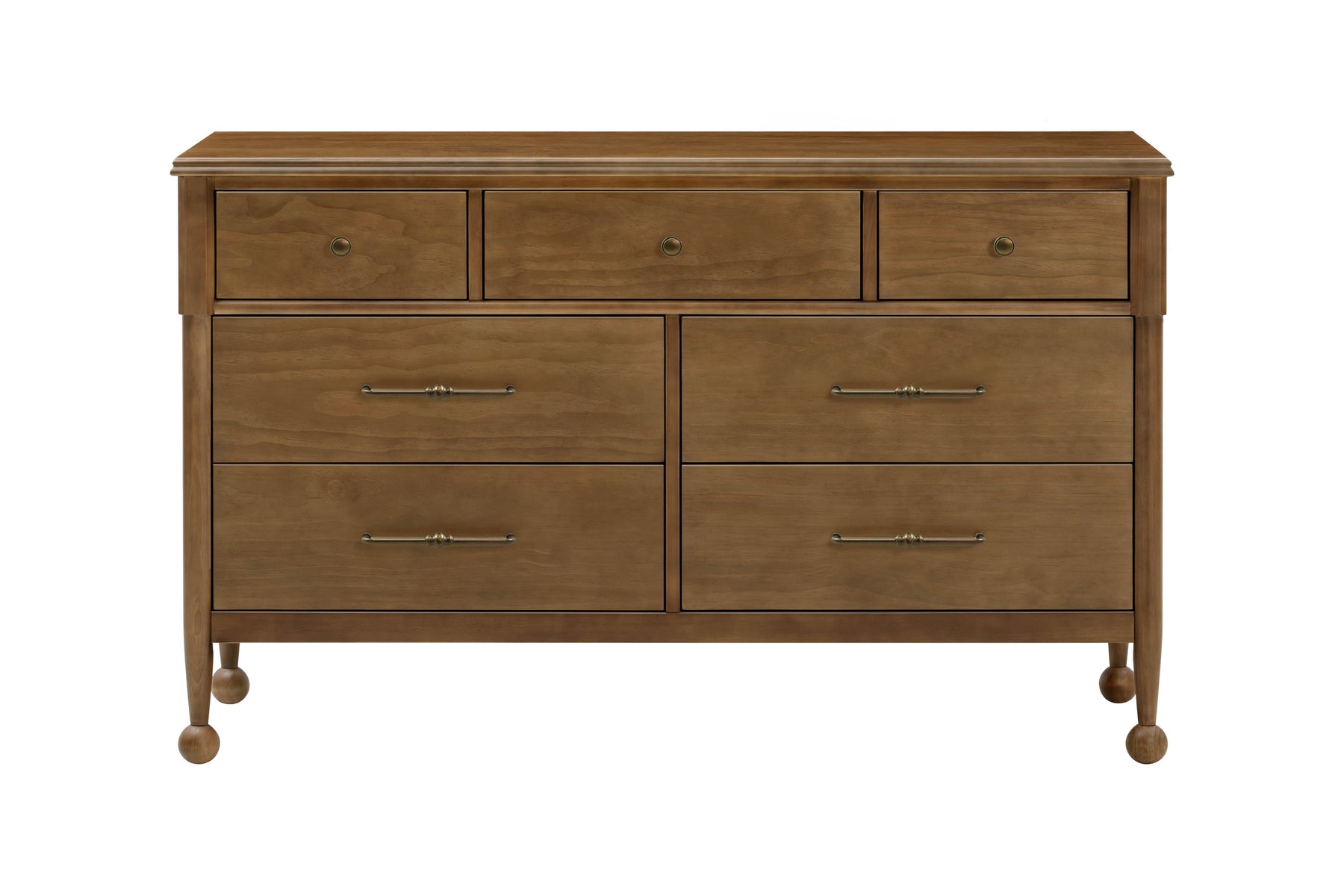 Crafted from New Zealand pine and American ash wood, the Alouette 7-Drawer Dresser blends vintage charm with modern function. Ballpoint feet and elevated brass hardware add classic elegance to its smooth-glide drawers and timeless design.