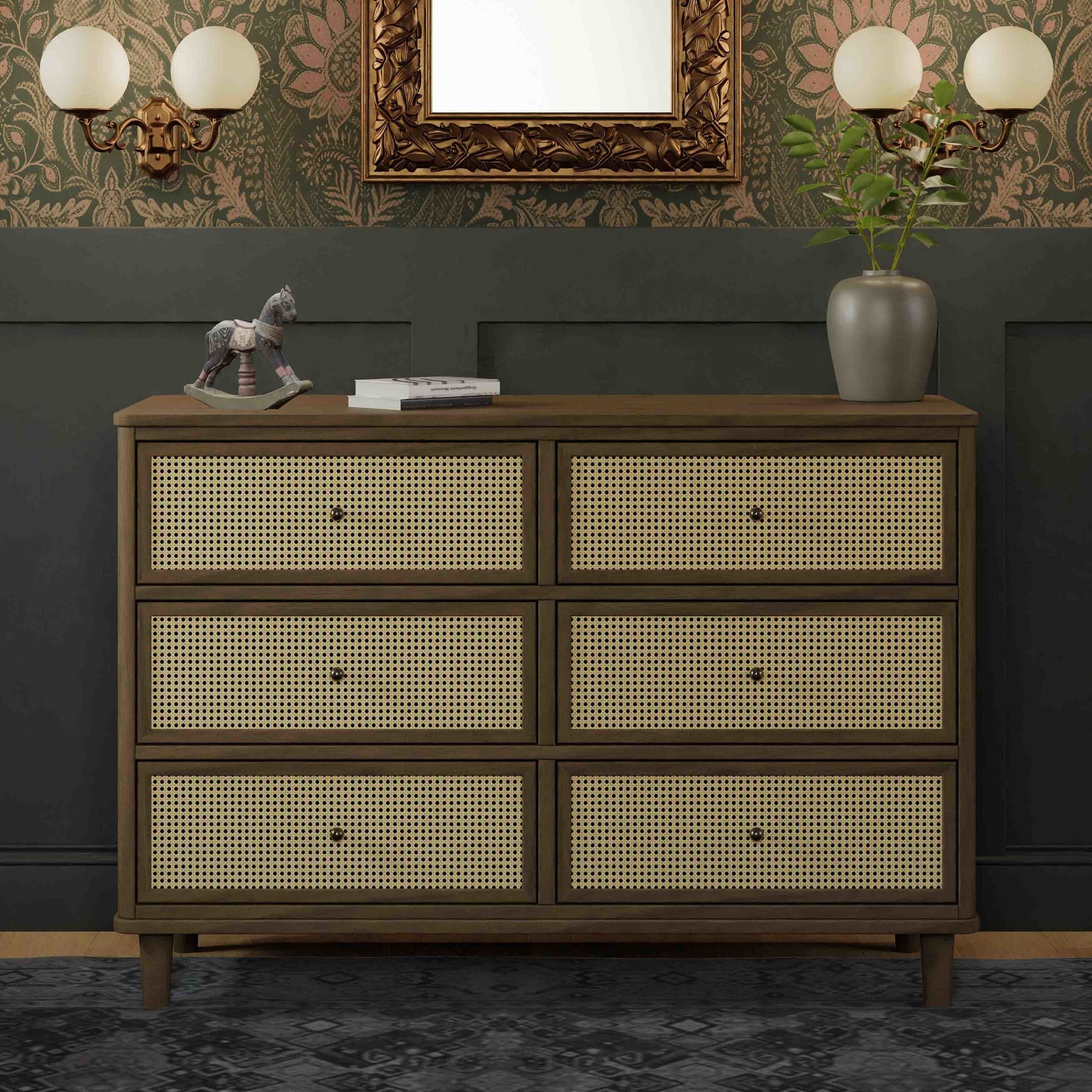 The classic inspired Marin 6-Drawer Dresser is a contemporary take on a traditional piece. Featuring a gently curved silhouette with solid rounded cane panels, the Marin is an effortlessly transitional piece for the home.