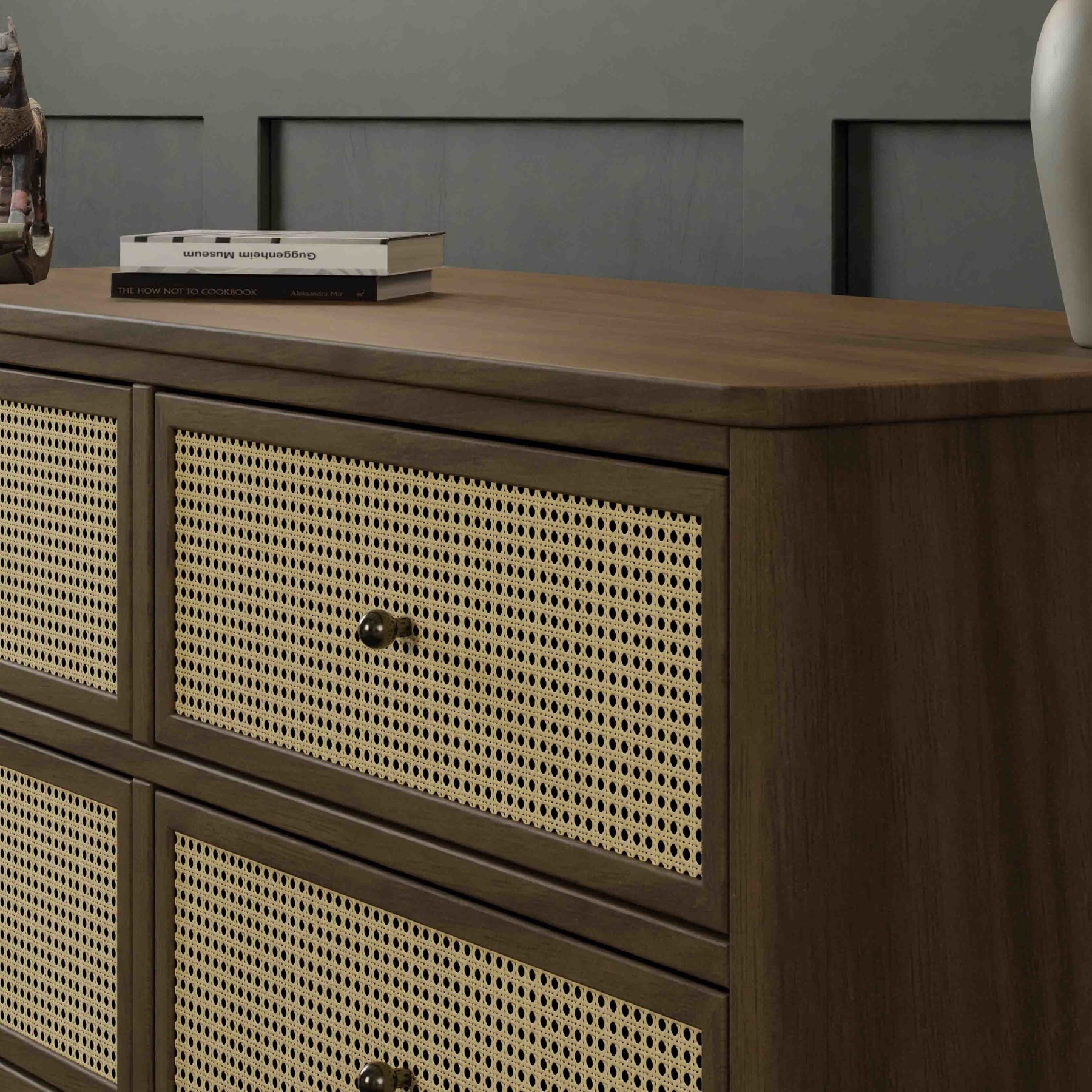 THOUGHTFUL DETAILS: Refined transitional style molding and cane drawer panels give the Marin Dresser a premium, contemporary-inspired design.