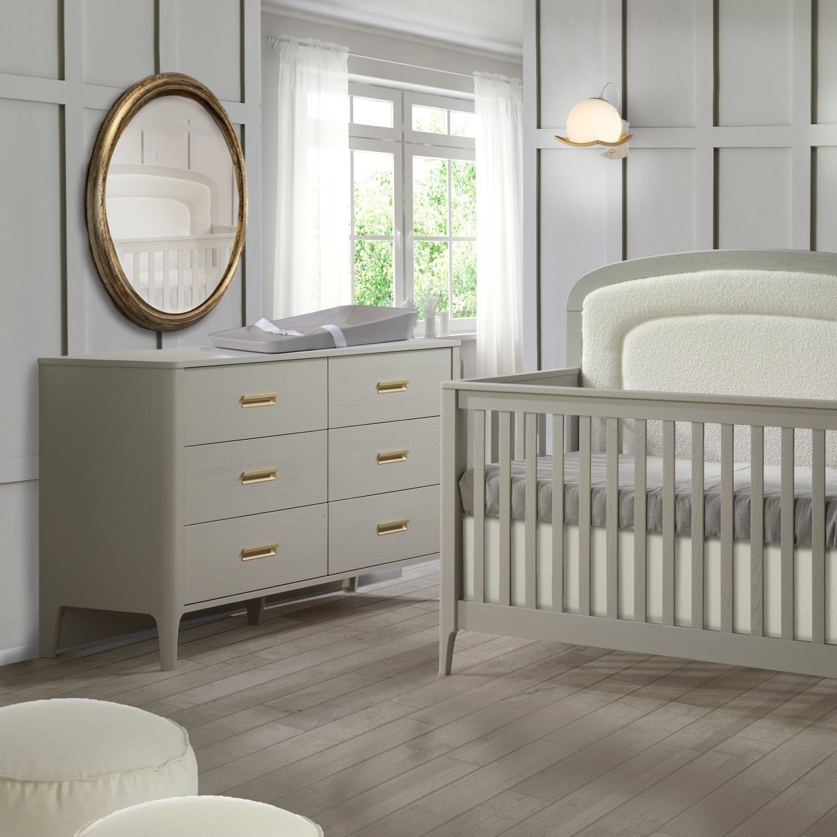 • Convertible crib designed with a uniquely curved headboard and an upholstered headboard panel which is buttonless for extra safety – No Choking hazards!