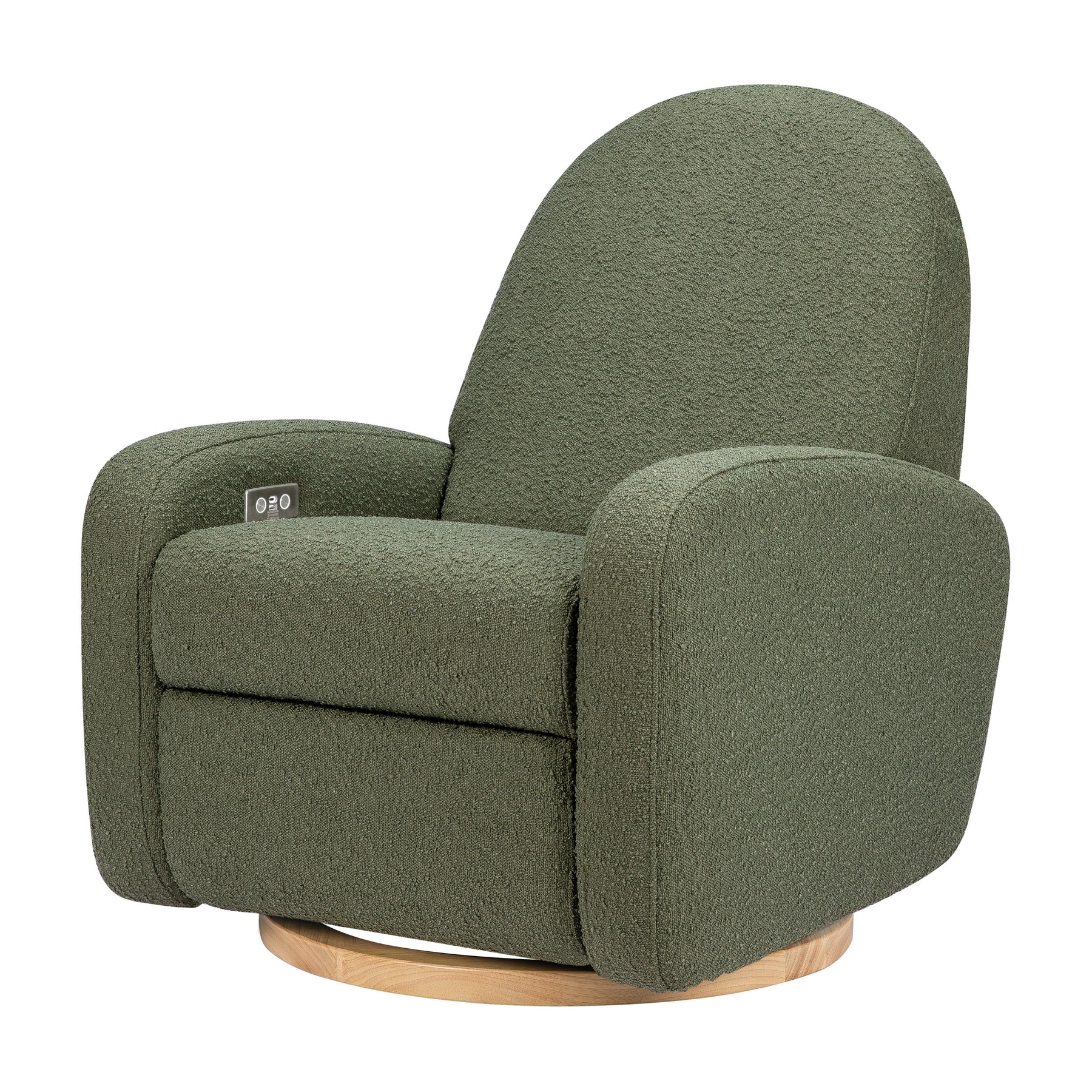 The Nami Glider Recliner is an elevated nursery accent piece thatѓ??s both playful and comfortable with its round and friendly silhouette. The oversized, organic proportions, coupled with its natural wood base, fit into a soft and modern palette. Rest and recharge in this recliner with its built-in USB port, smooth swivel motion, and effortless back and forth gliding. Lean back and relax at the touch of a button with this recliner's quiet electronic control button. Pair with Naka or Enoki Storage Ottoman to complete the look.