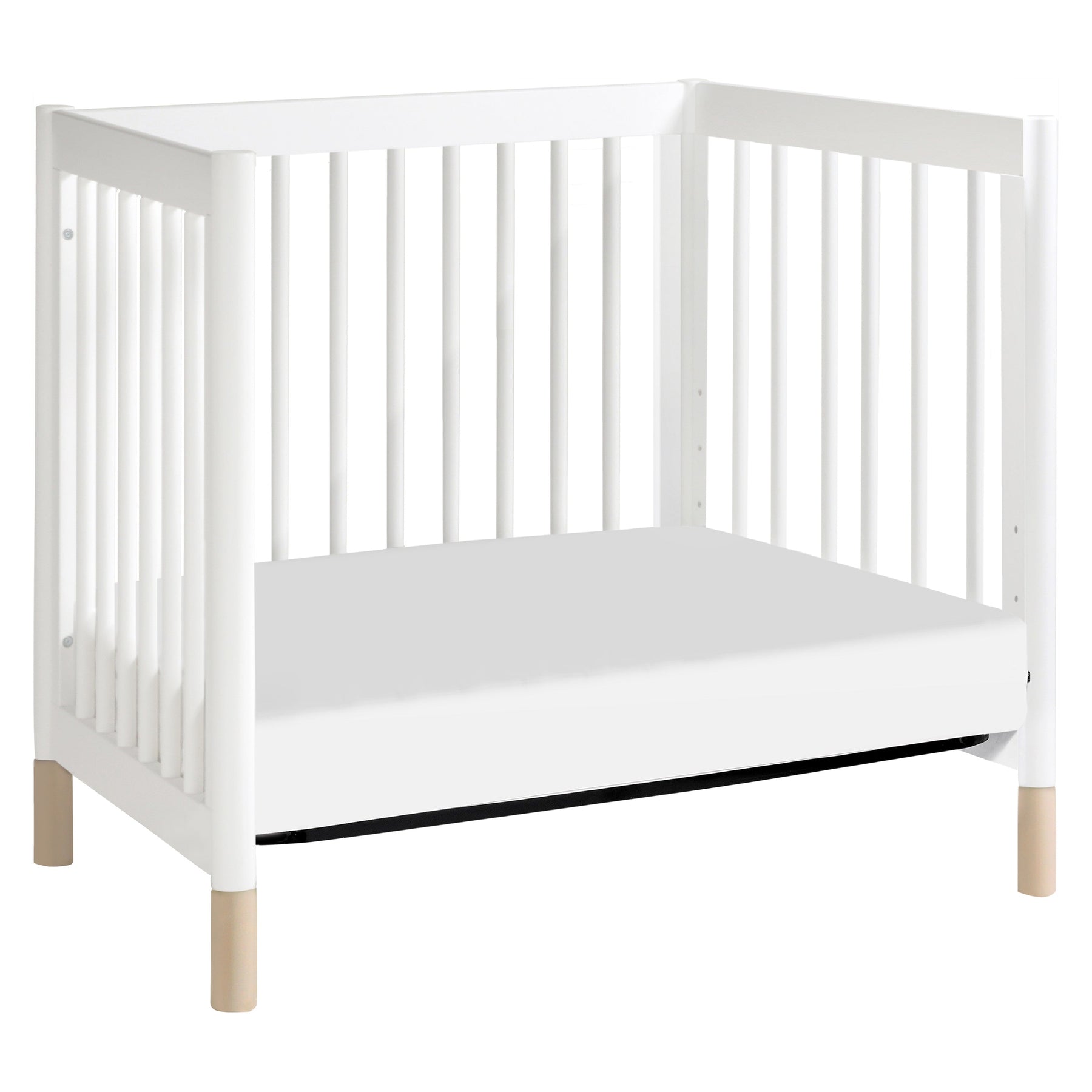 UNIVERSAL MATTRESS FIT: The Gelato is a standard mini size crib which includes a 1" mattress pad. We recommend additional support with our Pure by babyletto hypoallergenic and eco-conscious mini crib mattress (37" x 23.5").